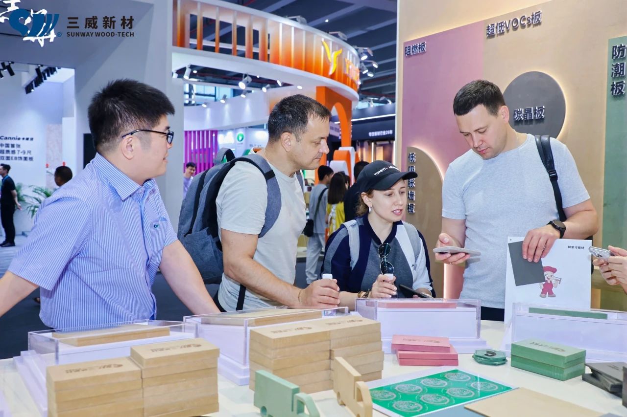展会人潮涌动,best365英国官网展位人气旺盛。领导、行业专家,全球客商先后到我司展位参观指导;观众驻足了解纤维板产品,讲解员细致介绍获好评,洽谈区满座,共探合作与行业前景。